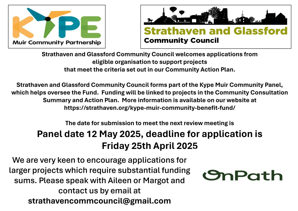 Strathaven and Glassford Community Council has funding packages that remain open for applications.